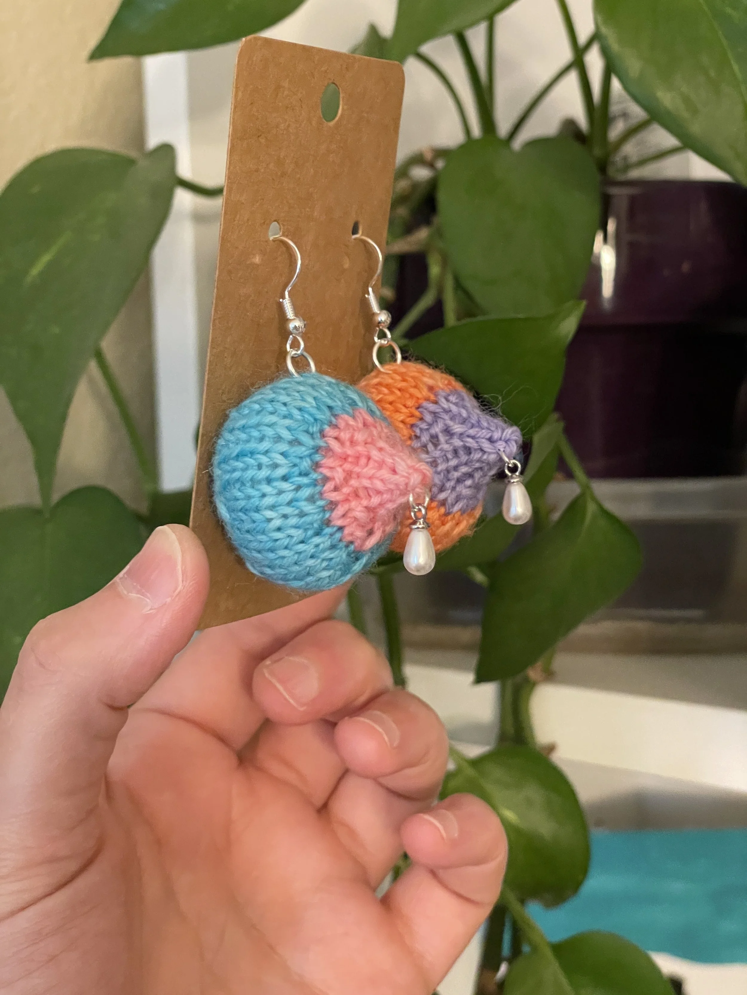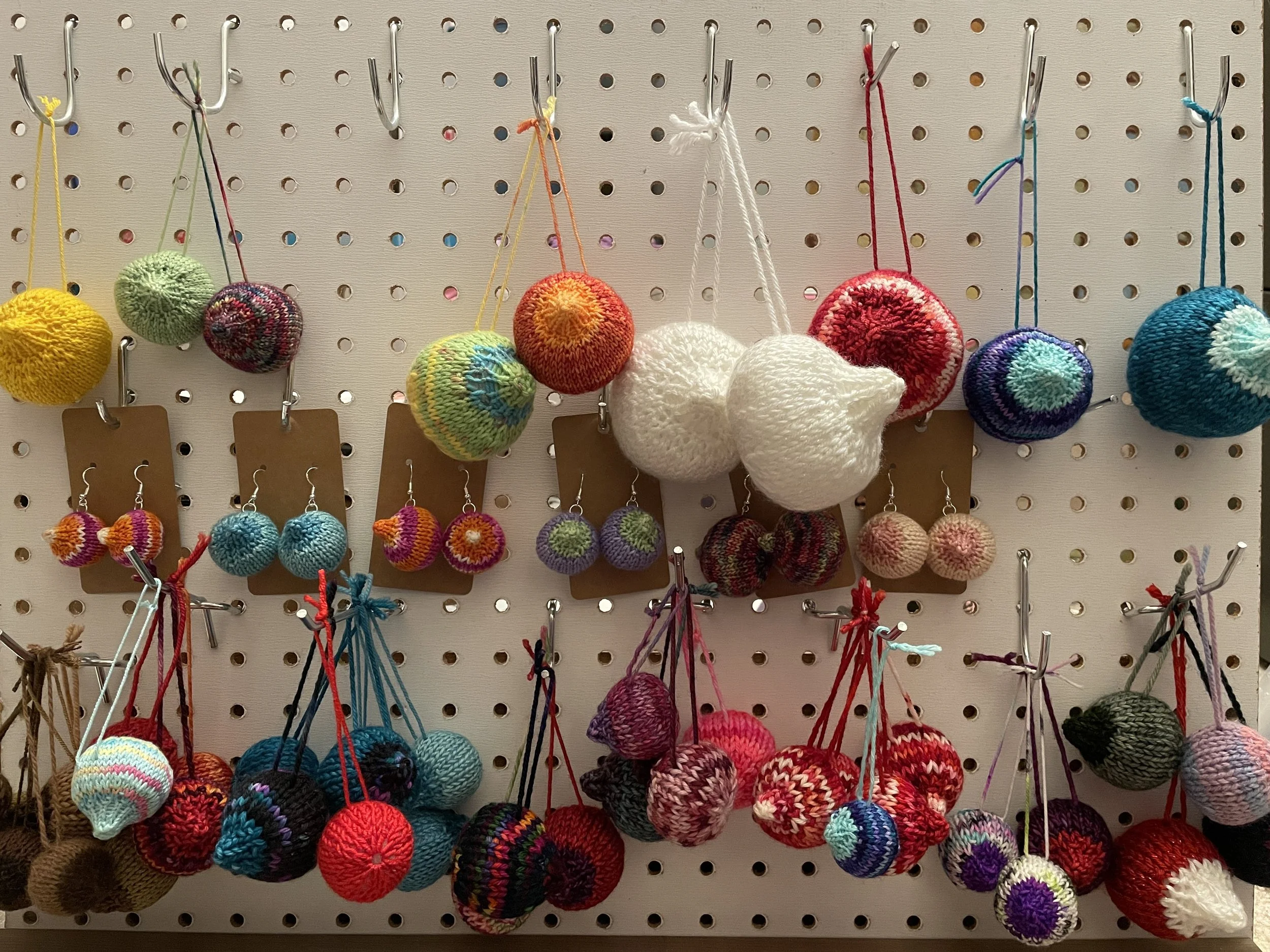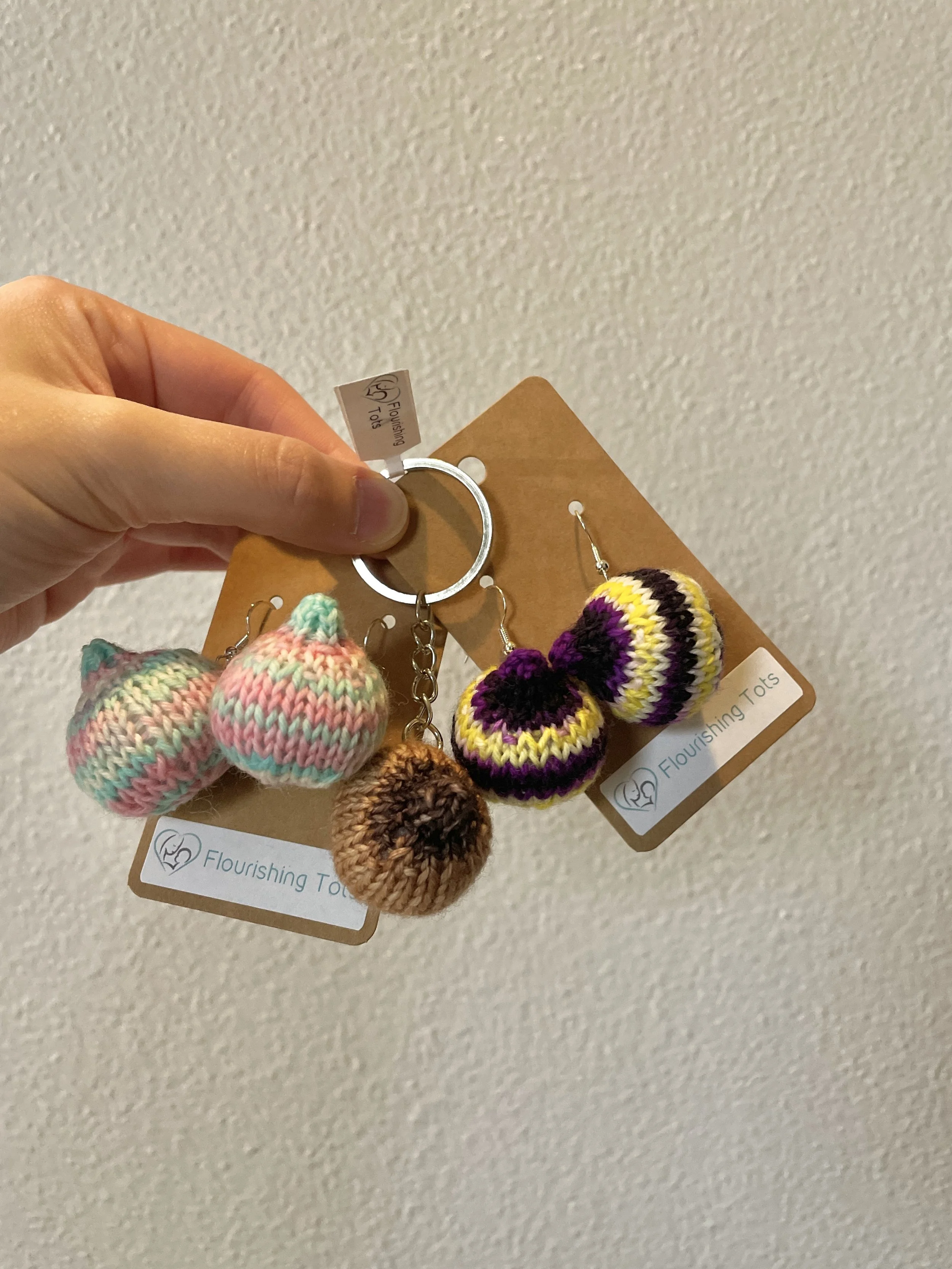Welcome to the wonderful world of knitted boobs! I started designing my own pattern and crafting these delightful little trinkets a couple of years ago, and the collection has grown quite a bit since then. Sizes range from tiny 1" ornaments to 5" breast models perfect for educational use (and yes, I once made a 20" breast by request — it's what happens when you let your kids pick the yarn!).