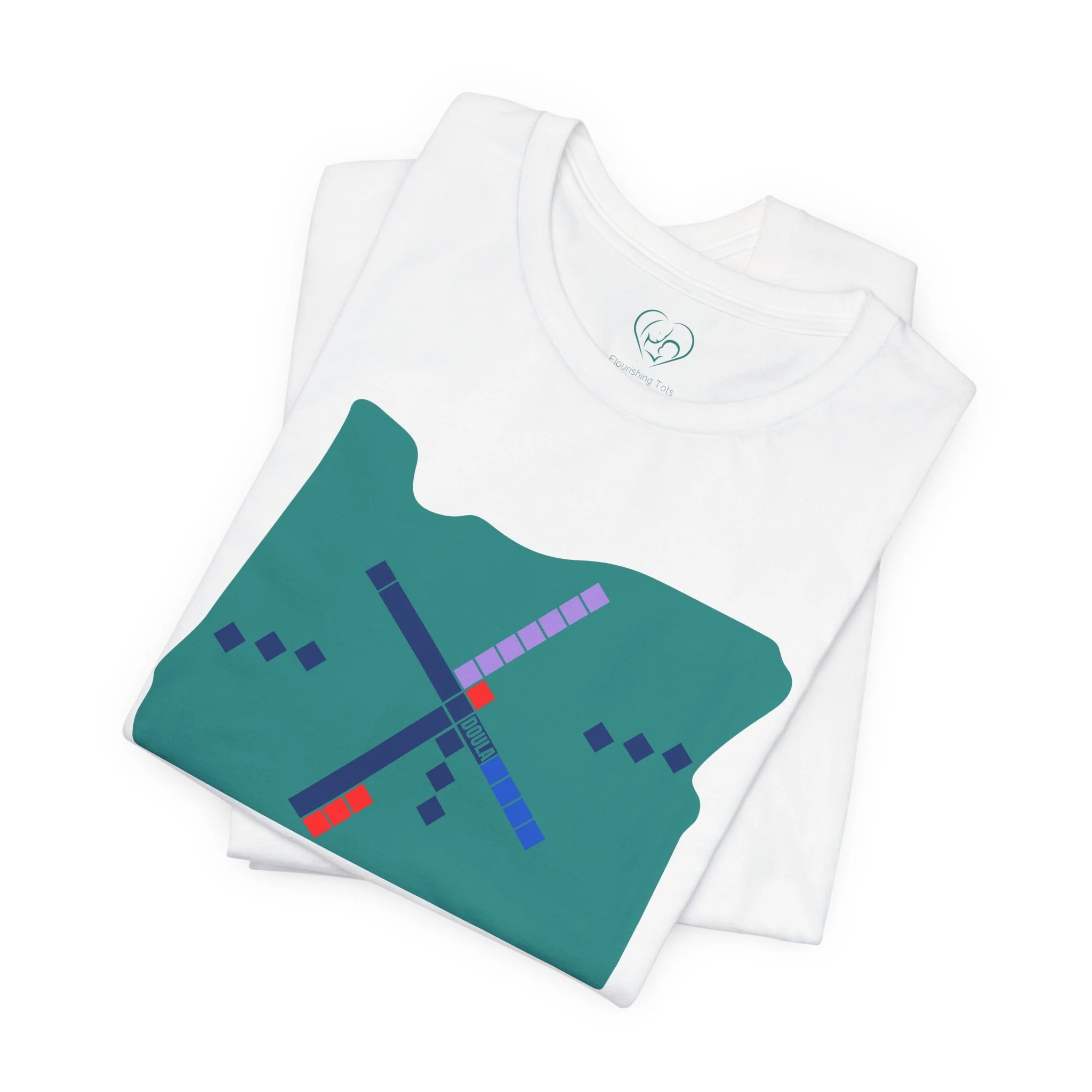 A lightweight, breathable tee that wears like a favorite from day one. This soft 100% Airlume combed and ring‑spun cotton shirt carries a bold, geometric map-style graphic in cool teal, indigo and coral — a modern nod to exploration and local pride. The retail cut and crew neckline keep the silhouette tidy and easy to layer, while side seams, shoulder tape and a ribbed knit collar preserve shape through many washes. Tear‑away label and REACH certification add comfort and peace of mind. Wear it to neighborhood meetups, low-key road trips, or anytime you want a clean, graphic look that feels casual but considered.